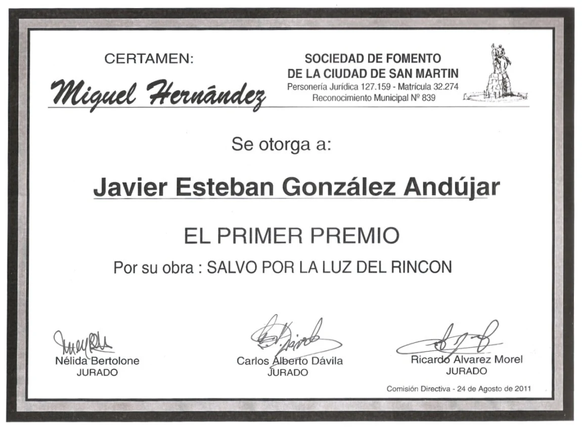 González Andújar, Javier Esteban. (septiembre 24, 2011). Diploma del Certamen Miguel Hernández. Finales Cerrados. https://www.finalescerrados.com/2011/09/diploma-del-certamen-miguel-hernandez.html